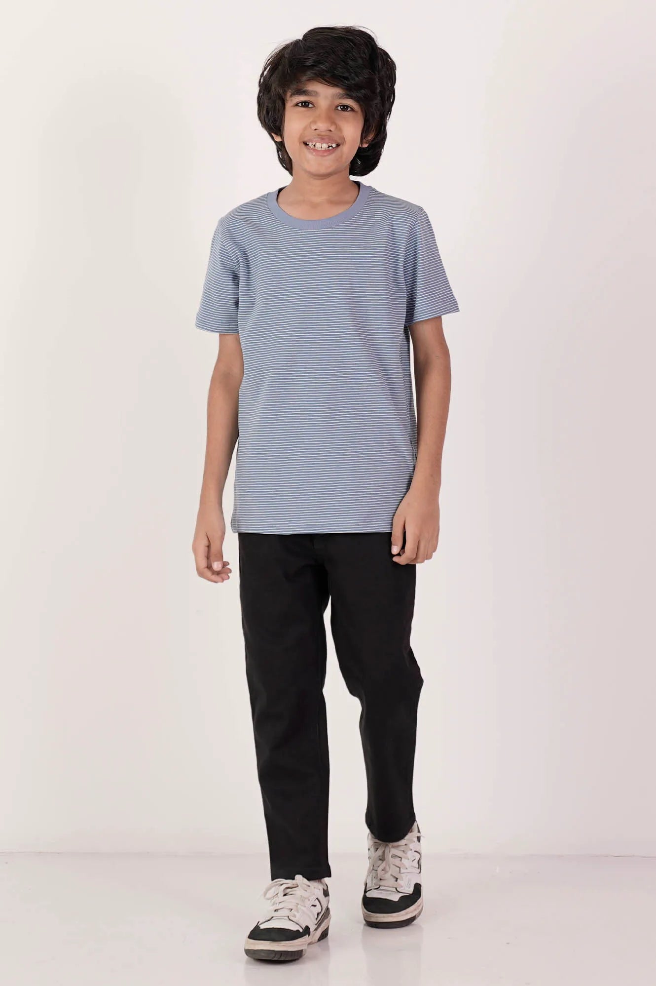Lightweight and easy to wear, this t-shirt is perfect for active kids who want to stay stylish. Also, This t-shirt features a stylish strip design, crafted from soft and breathable cotton fabric for ultimate comfort.