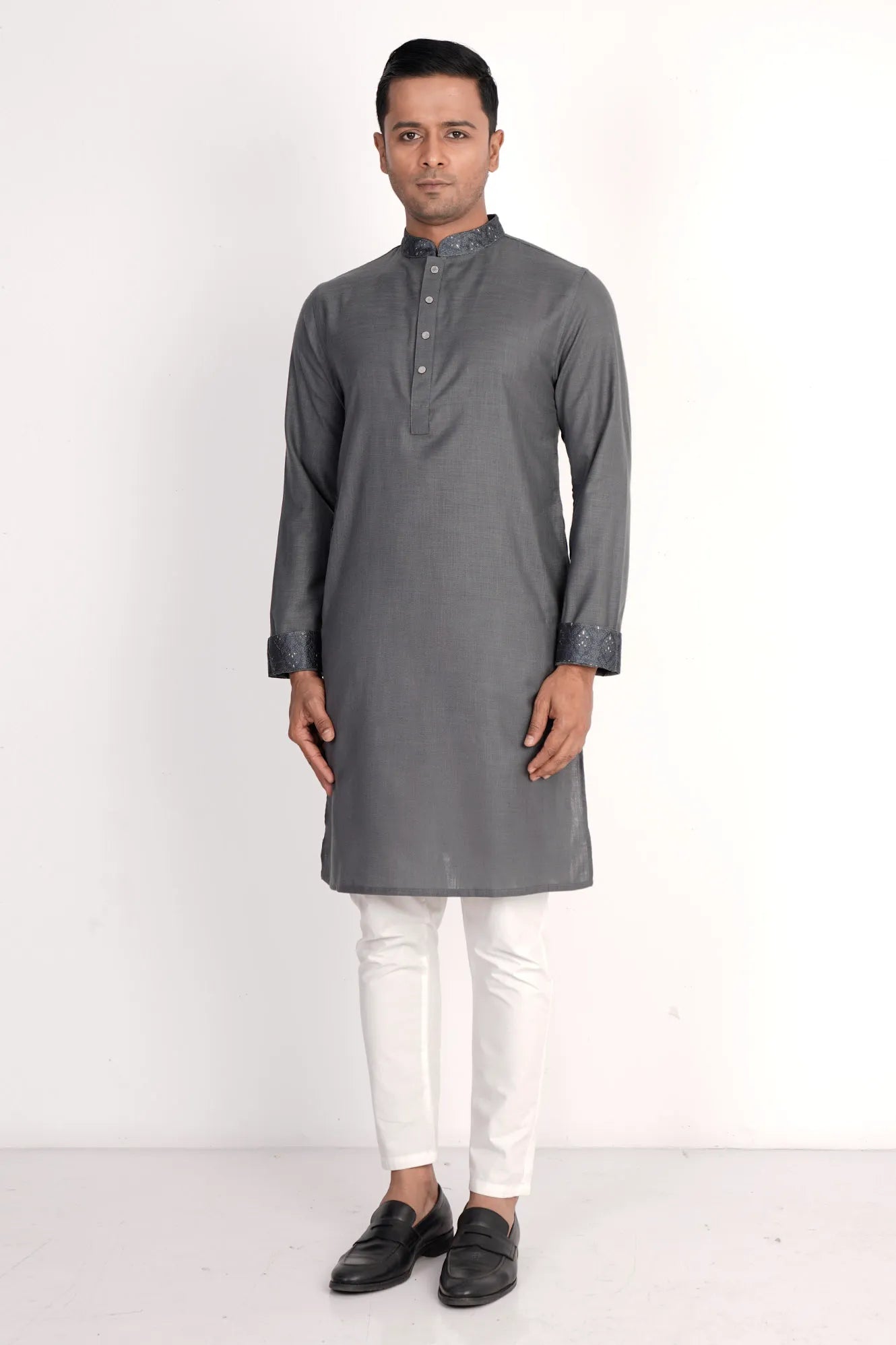 Adding contrast fabric along the edges of the Panjabi can create visual interest and make the garment stand out. For color & Fabric, this panjabi is comfortable and eye-catching.