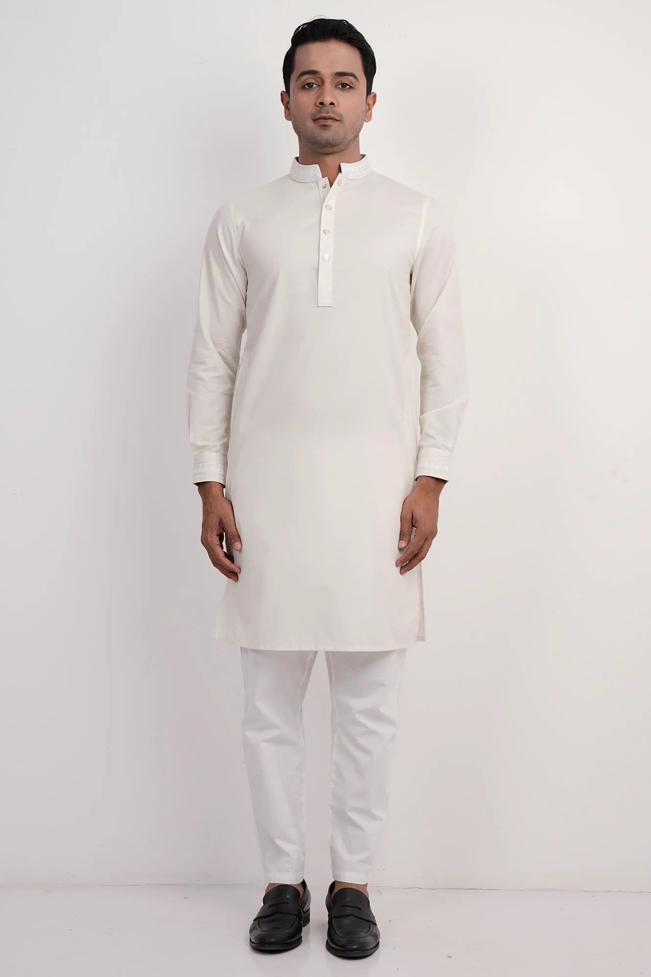 This Premium Panjabi is the epitome of sophistication, crafted from luxurious cotton fabric with exquisite embroidery on the collar and sleeves. Its refined detailing and superior comfort make it the perfect choice for special occasions and celebrations.