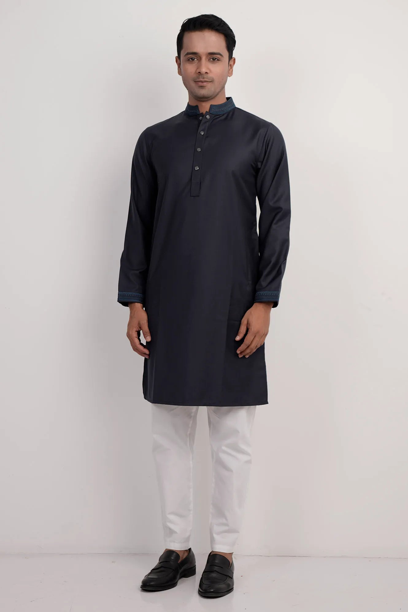 This premium panjabi for men is crafted from a luxurious blend of cotton and viscose fabric, offering both comfort and a smooth, refined texture. The fabric combination ensures breathability and softness, while the viscose adds a subtle sheen for an elevated look.