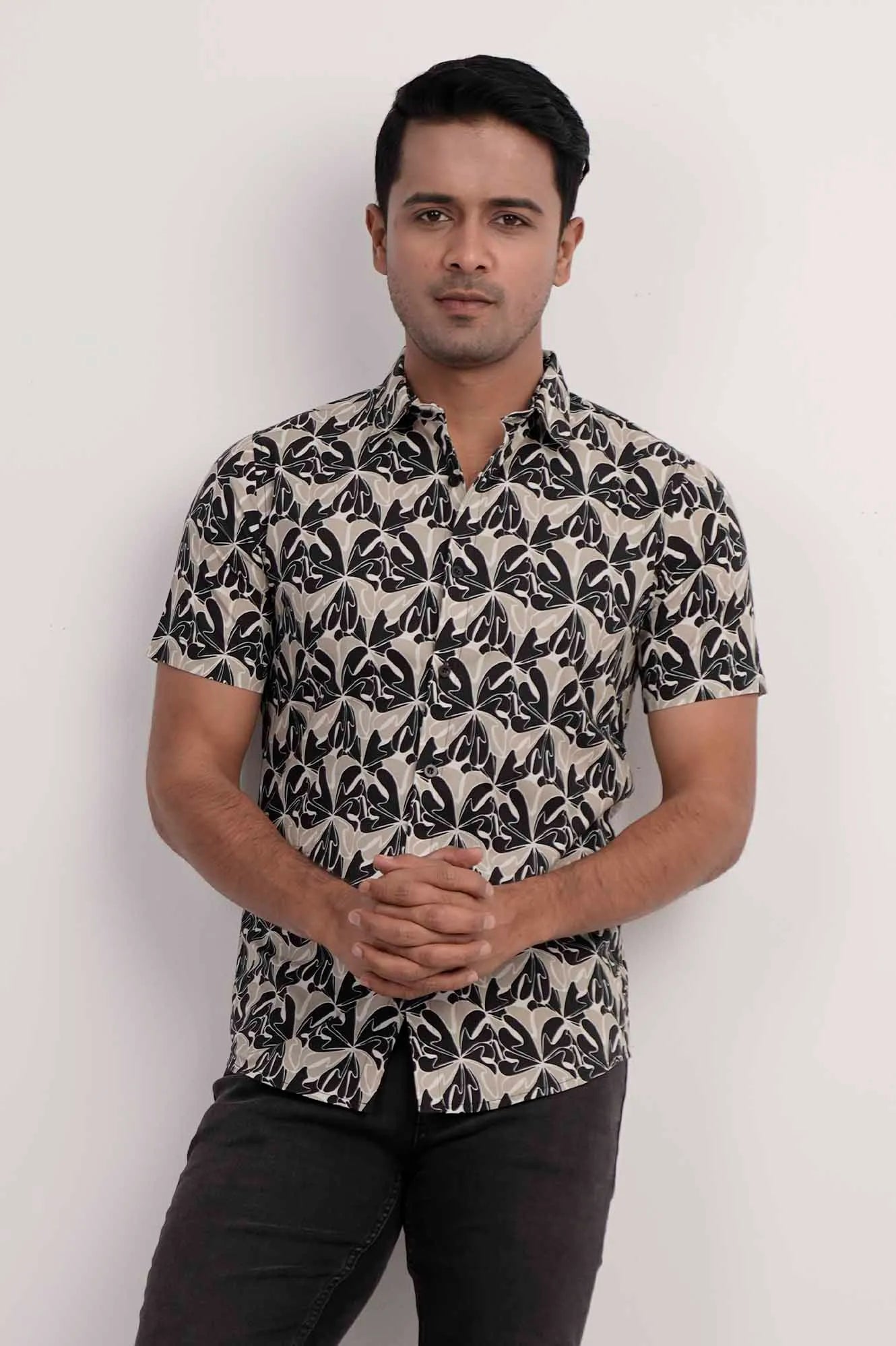 This short-sleeved shirt, crafted from soft and breathable cotton fabric, offers ultimate comfort for those warmer days. Designed with a bold leaves-printed pattern, it brings a touch of nature-inspired style to your wardrobe.