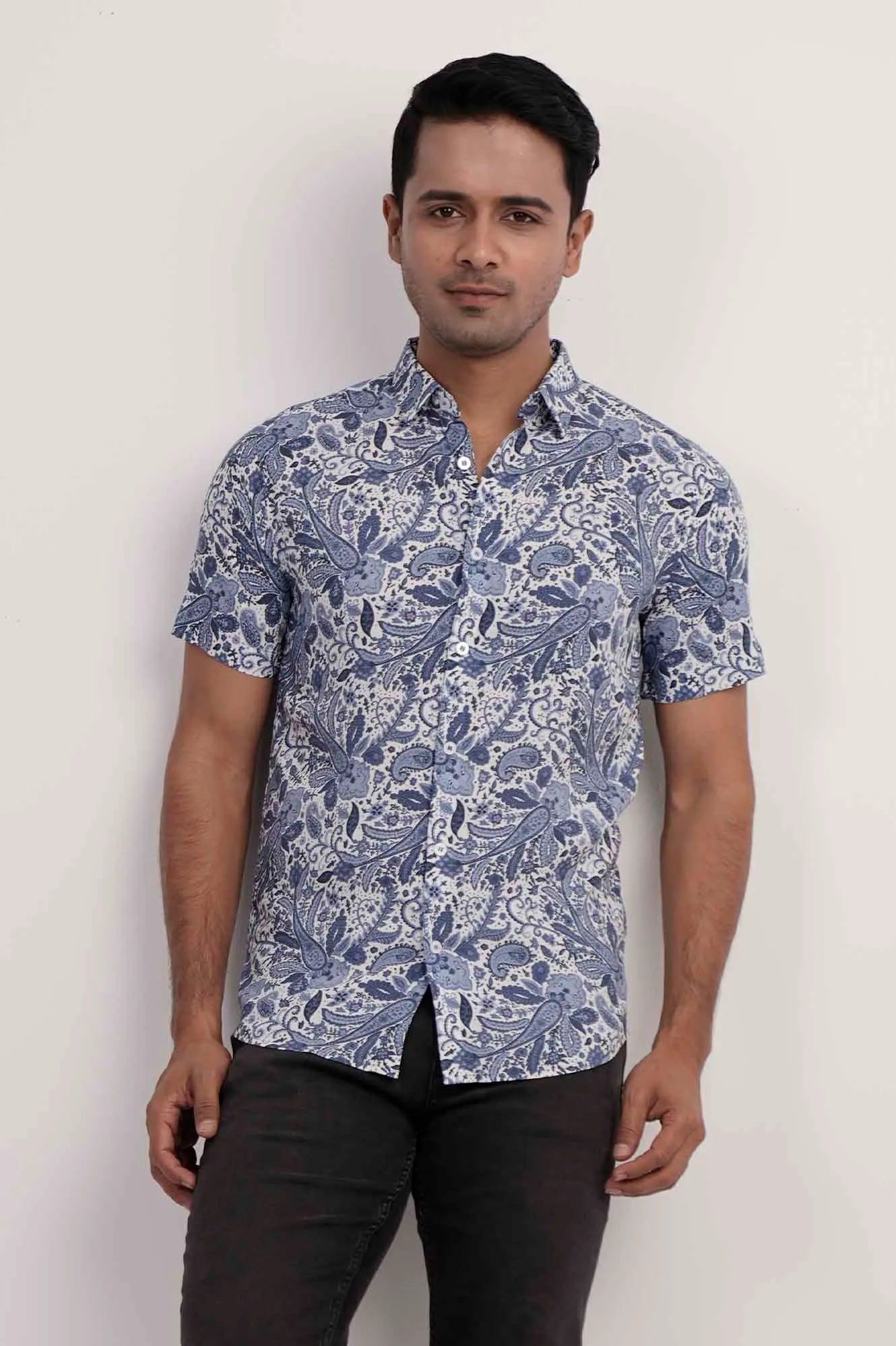 Crafted from smooth viscose fabric, this short-sleeve shirt offers a cool and comfortable fit for the hot season. The tropical floral print brings a lively, exotic vibe to your wardrobe, making it an ideal choice for vacations or casual gatherings.
