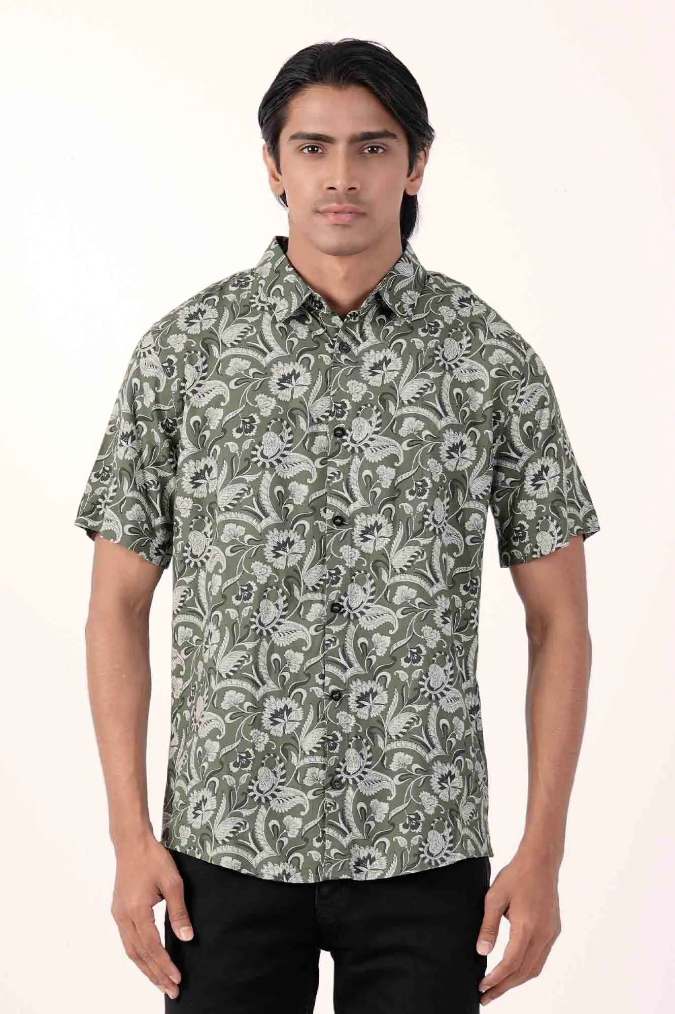 The subtle floral printed design gives it a timeless, elegant appeal, making it perfect for both casual and semi-formal occasions. With its relaxed fit and soft texture, this shirt provides all-day comfort while maintaining a stylish, polished look.