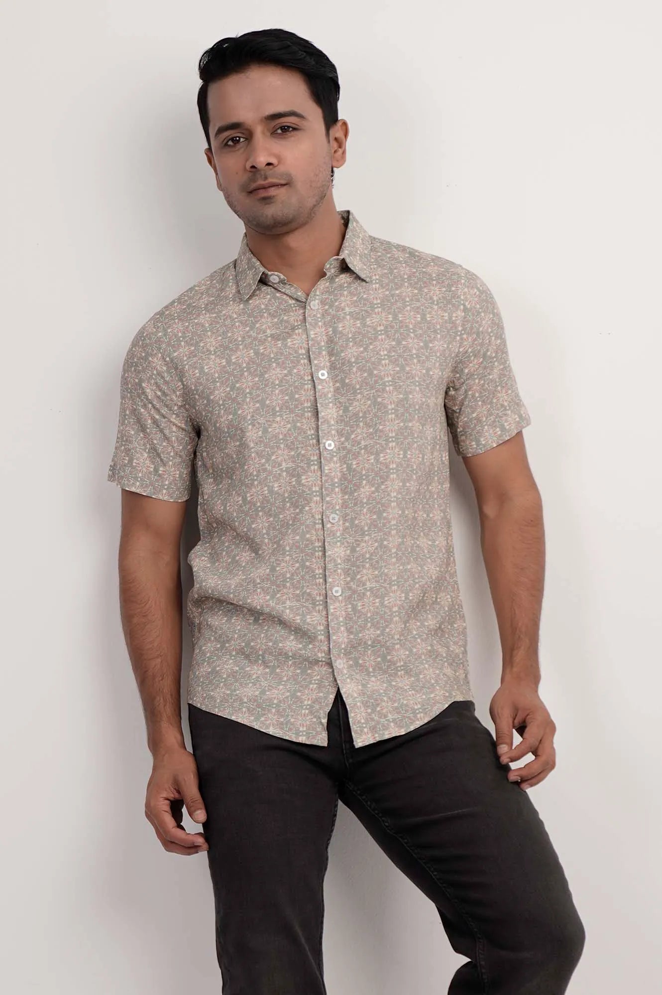The subtle floral printed design gives it a timeless, elegant appeal, making it perfect for both casual and semi-formal occasions. With its relaxed fit and soft texture, this shirt provides all-day comfort while maintaining a stylish, polished look.