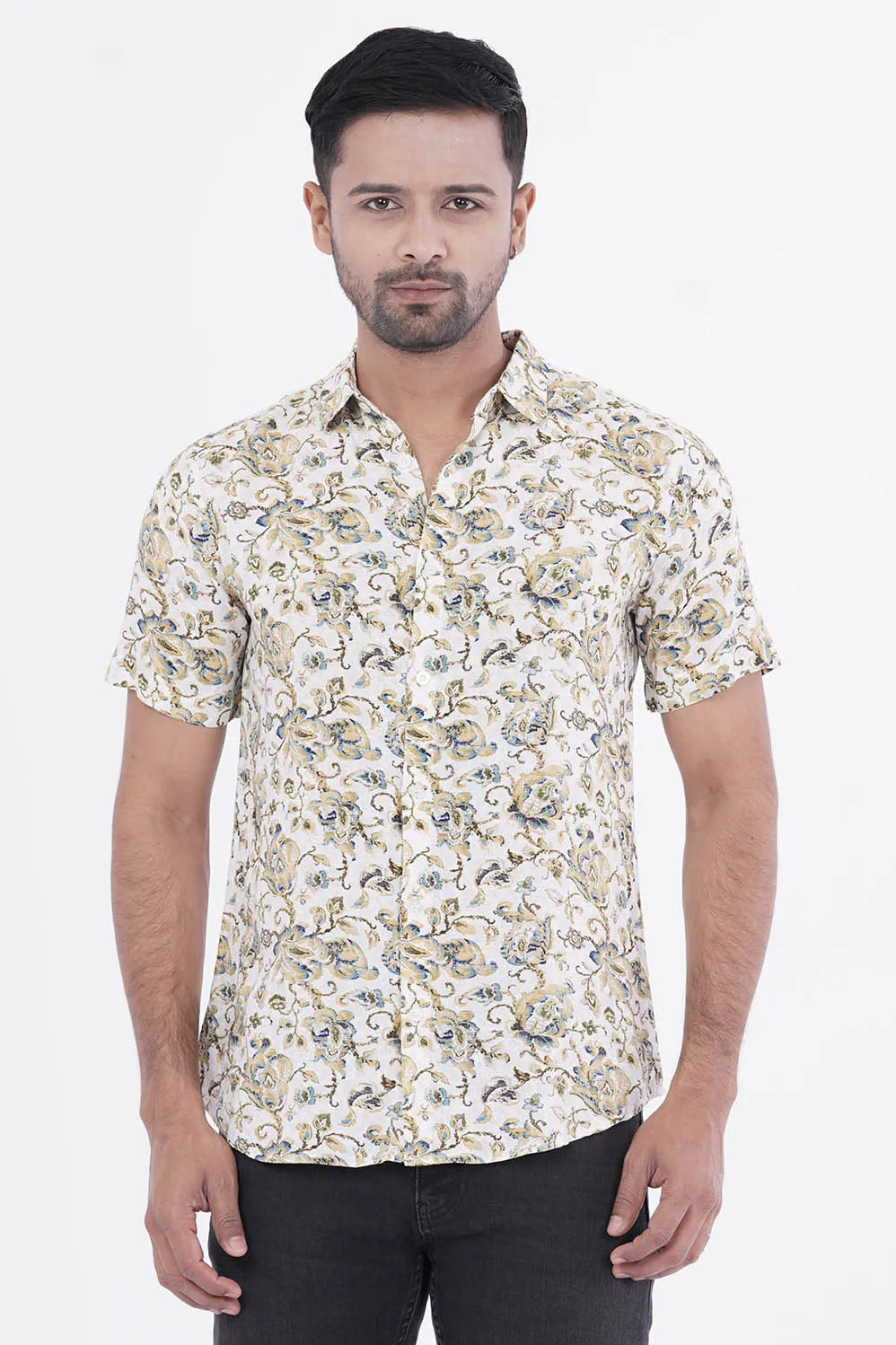 Crafted from lightweight and breathable viscose fabric, this shirt offers both comfort and style. Whether you're strolling through the city streets or enjoying a leisurely brunch with friends, this shirt will keep you looking effortlessly cool and on-trend.