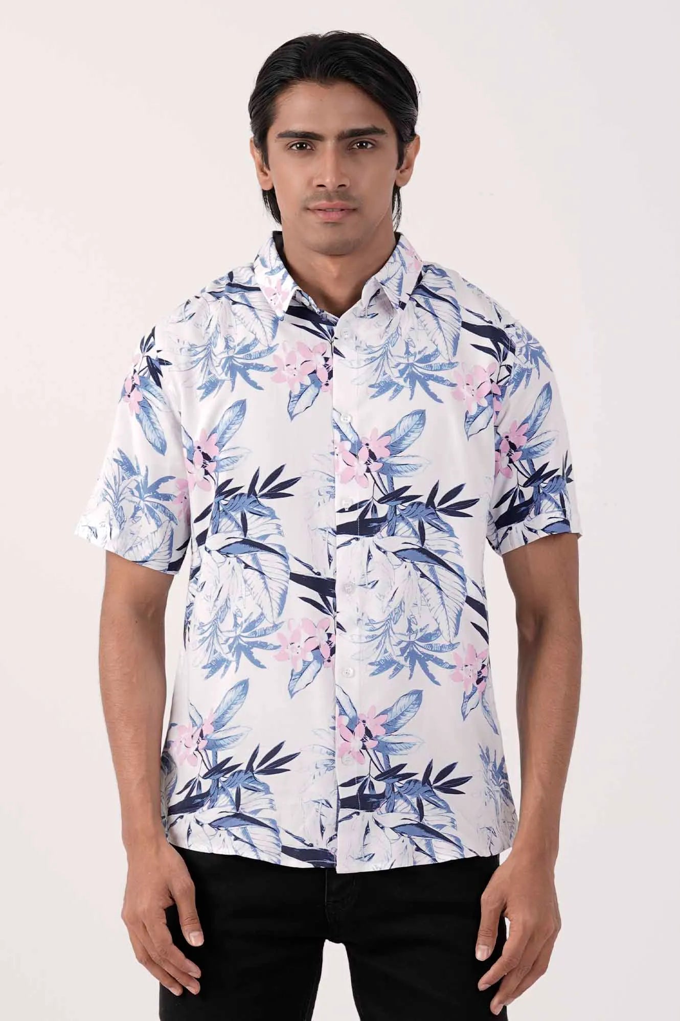 Crafted from smooth viscose fabric, this short-sleeve shirt offers a cool and comfortable fit for the hot season. The tropical floral print brings a lively, exotic vibe to your wardrobe, making it an ideal choice for vacations or casual gatherings.