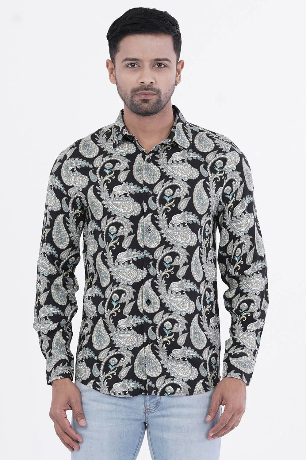 Our Bandana Printed Viscose Shirt is designed to provide a comfortable and flattering fit for men of all shapes and sizes. Add a pop of color and pattern to your wardrobe with this stylish and versatile shirt.