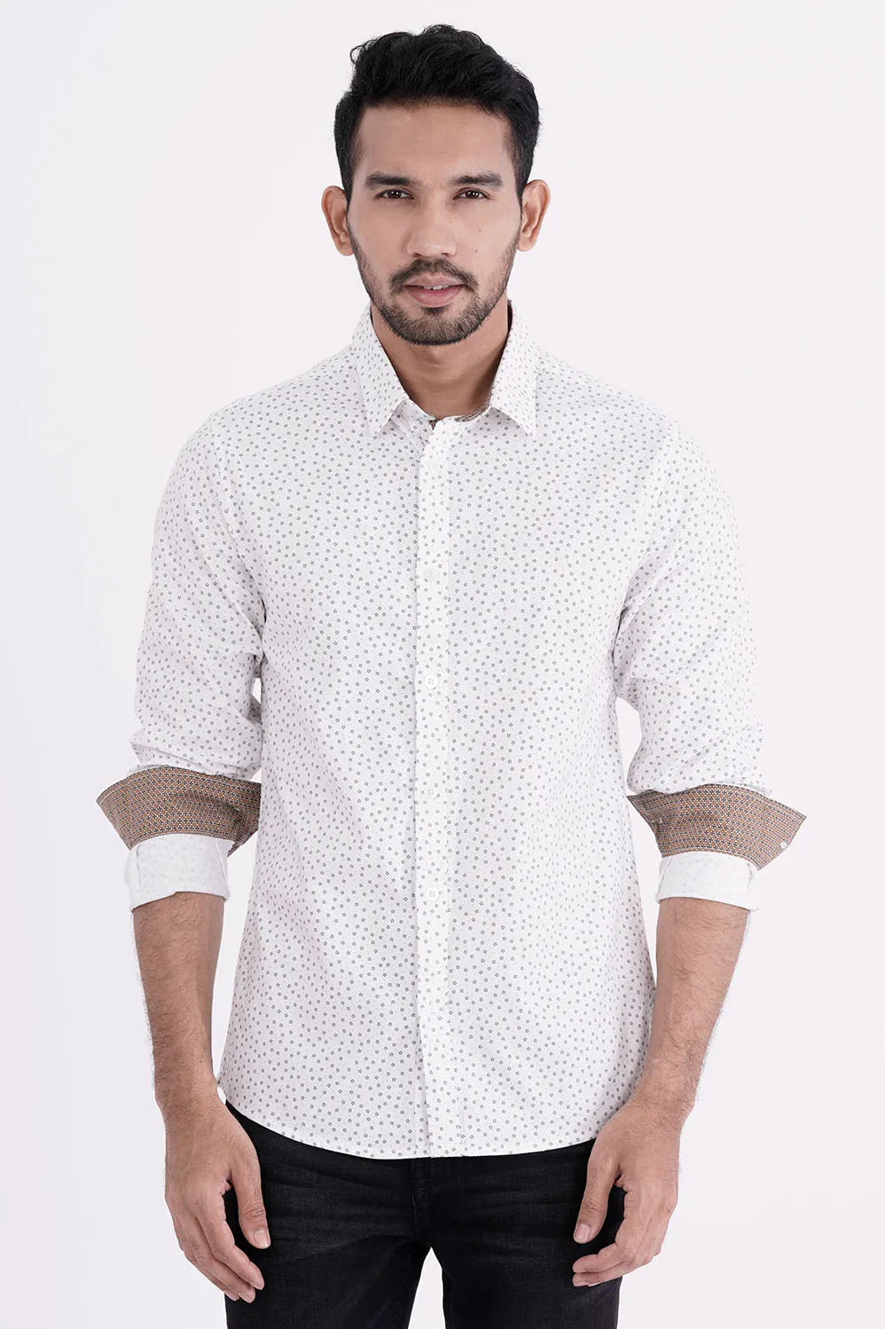 • Printed Contrast in the Inside Placket, Collar, and Cuffs