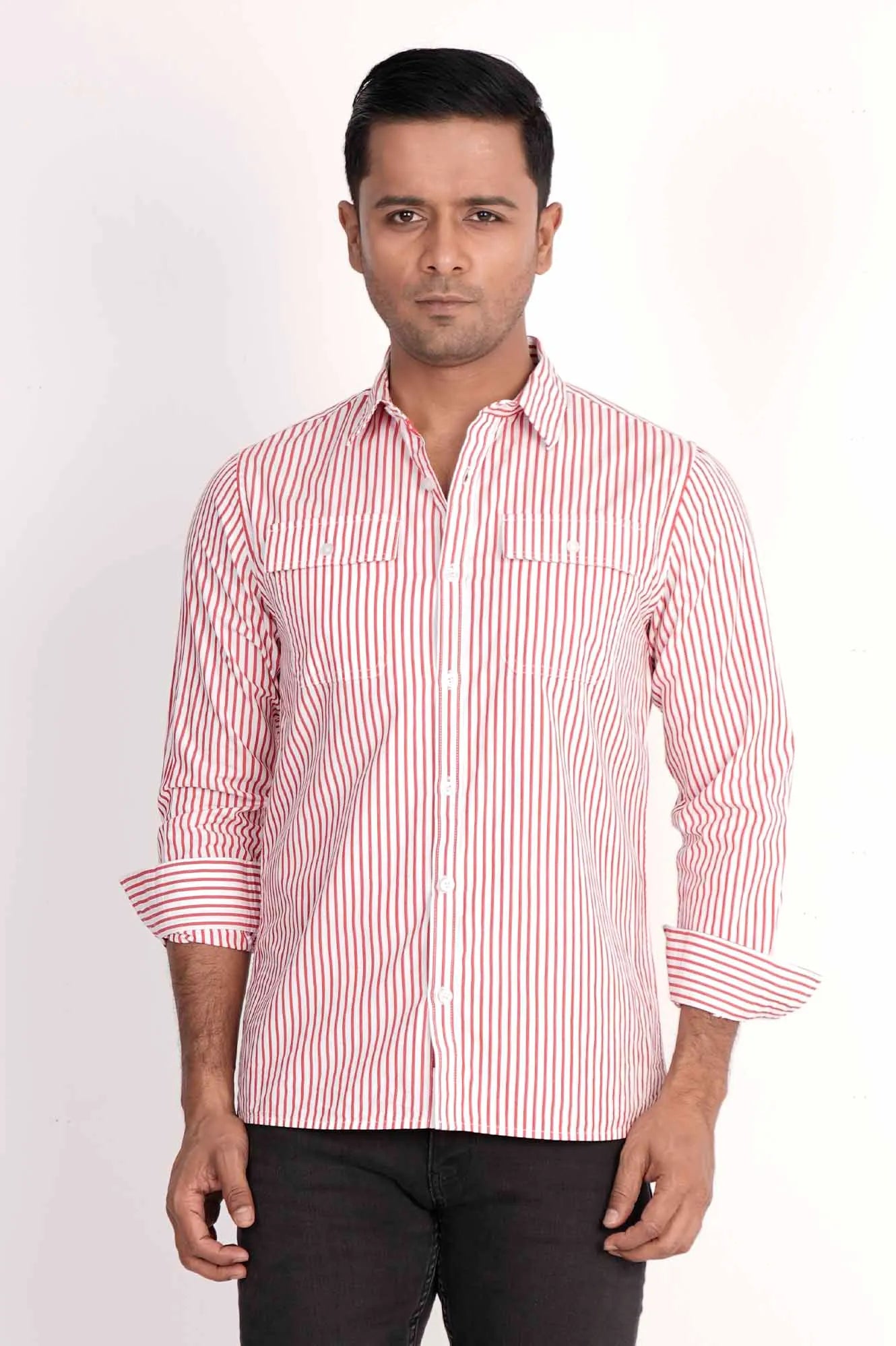 Mens Casual Shirt (Red Stripe)