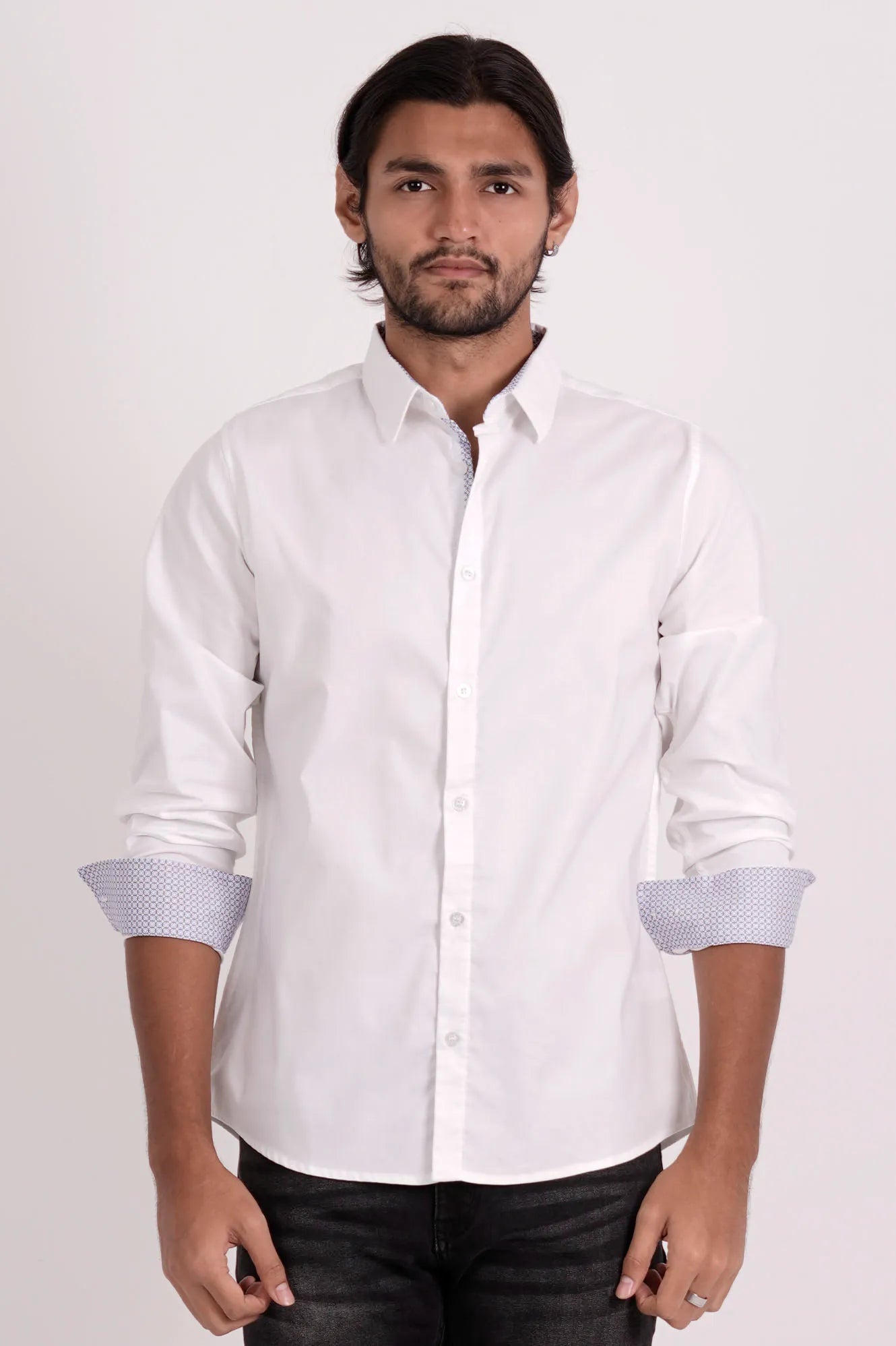 This premium cotton fabric shirt offers comfort and a versatile fit, ideal for layering or wearing tucked or untucked.