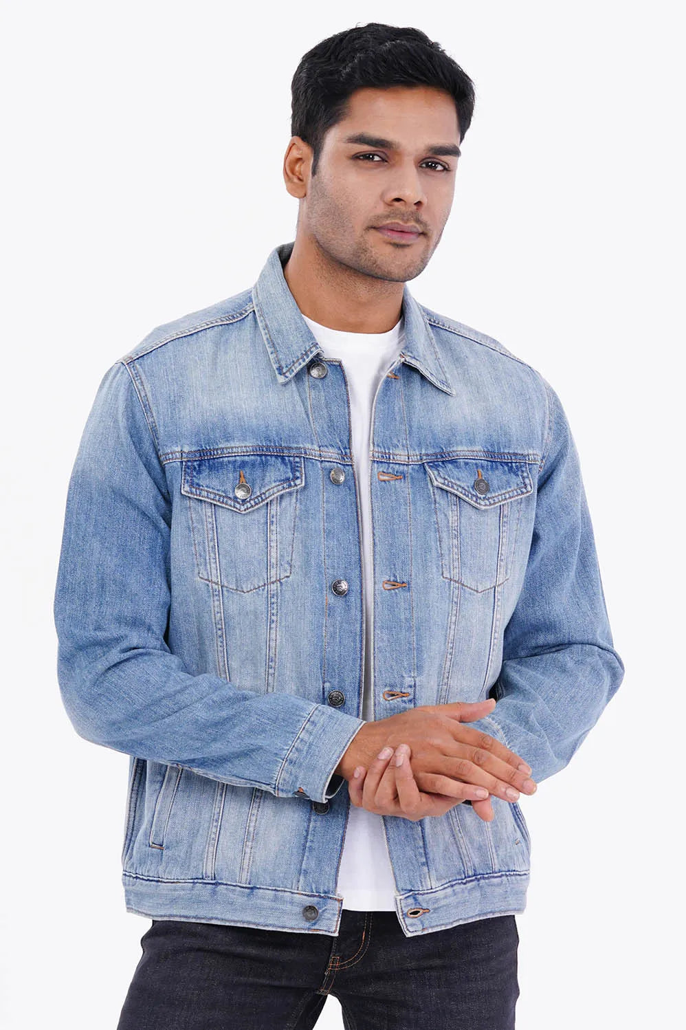 This Denim Jacket Is Crafted From Soft Cotton Fabric For Enhanced Warmth And Softness.