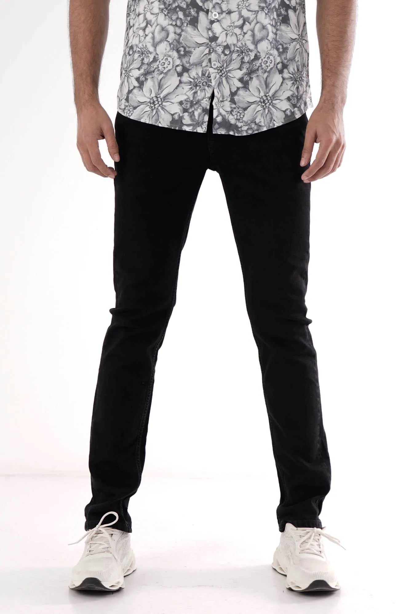These black denim pants offer a sleek, modern look with a slim fit that contours to the body for a sharp, tailored silhouette. The deep black wash adds a versatile, edgy touch, making these jeans perfect for both casual and dressier occasions.