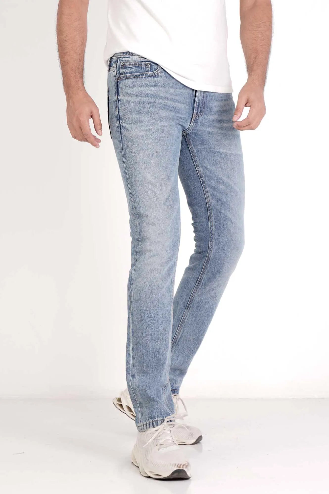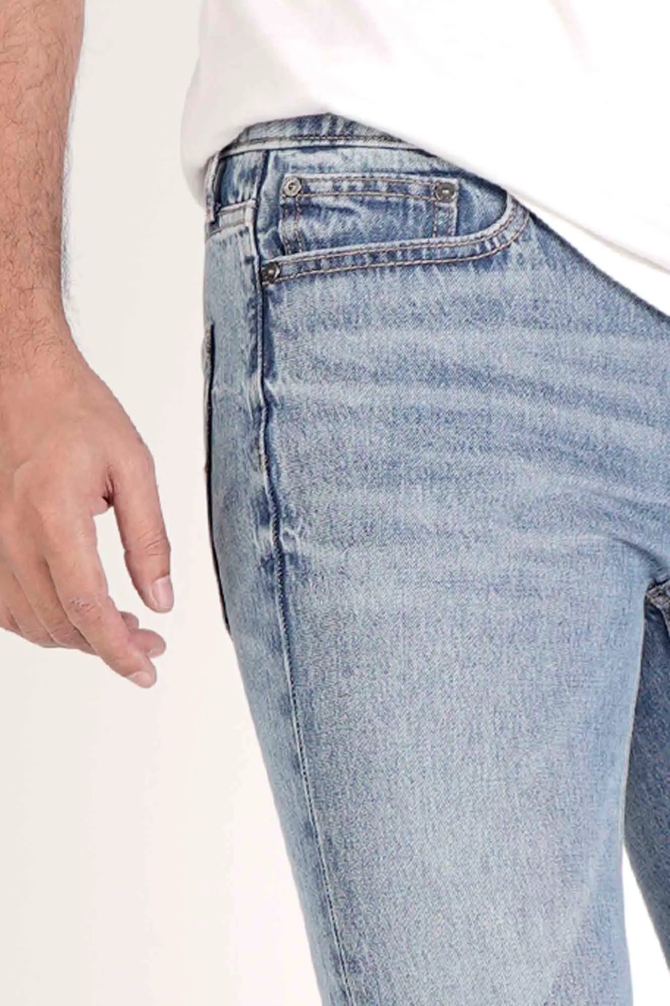 These denim pant is a timeless wardrobe staple, featuring a slim fit and a light wash for a clean, modern look.