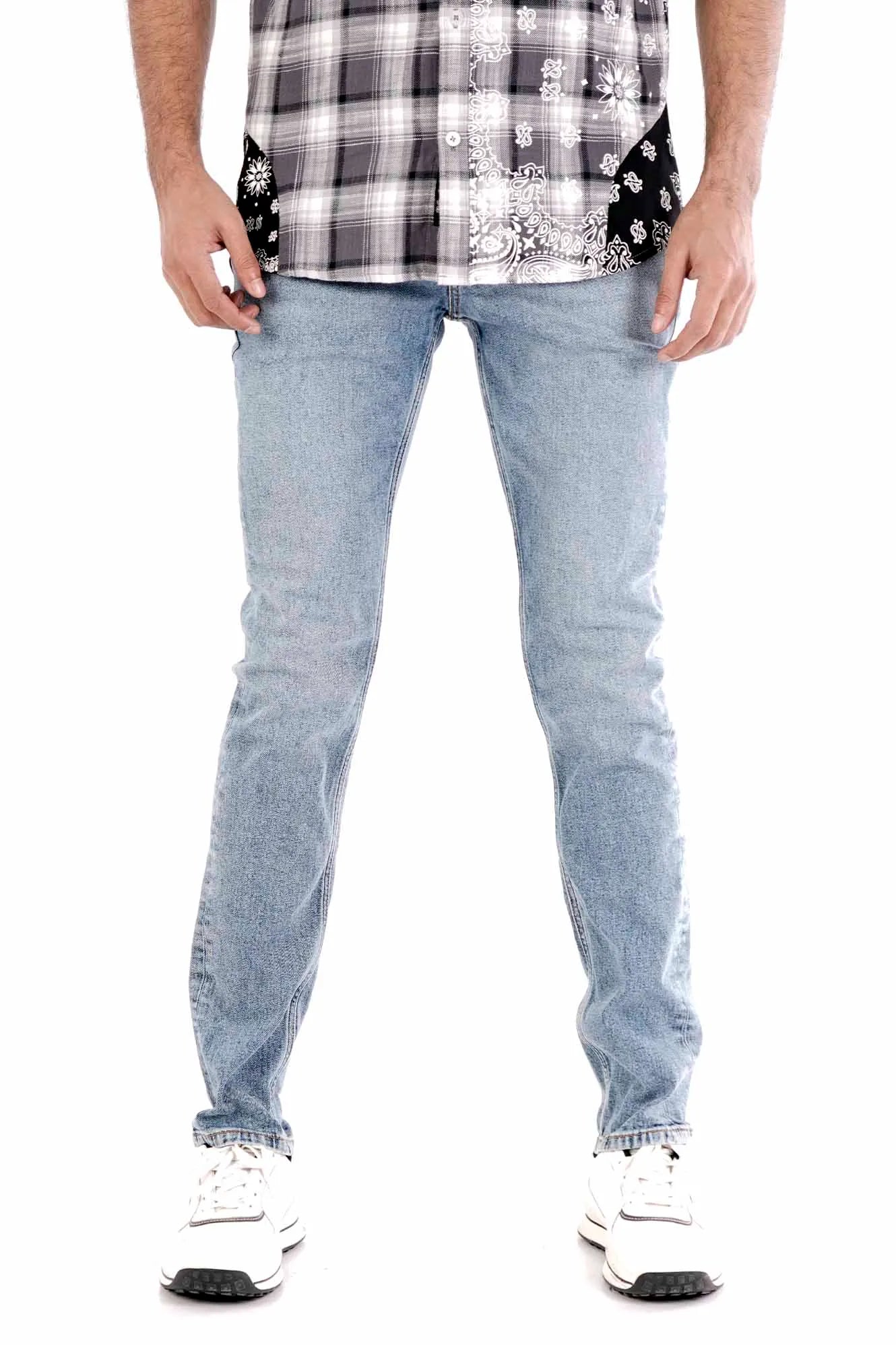 Elevate your casual style with these light-wash denim pants, designed with a slim fit that contours gently to the body for a sharp, tailored look. These jeans are made from soft, breathable cotton fabric and offer comfort and flexibility without compromising durability.