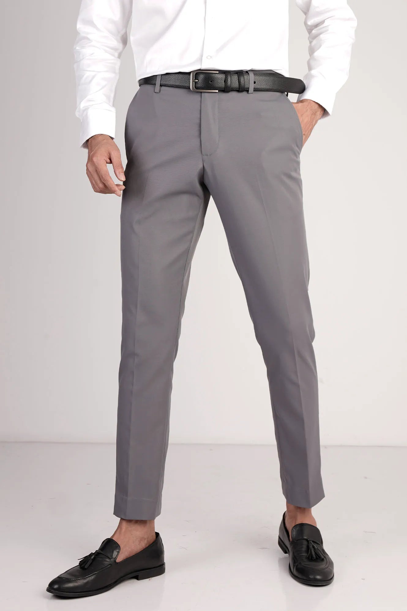 This men's formal pant features a sleek slim fit and high-quality polyester fabric, offering a sharp, polished look for the office or any formal occasion.