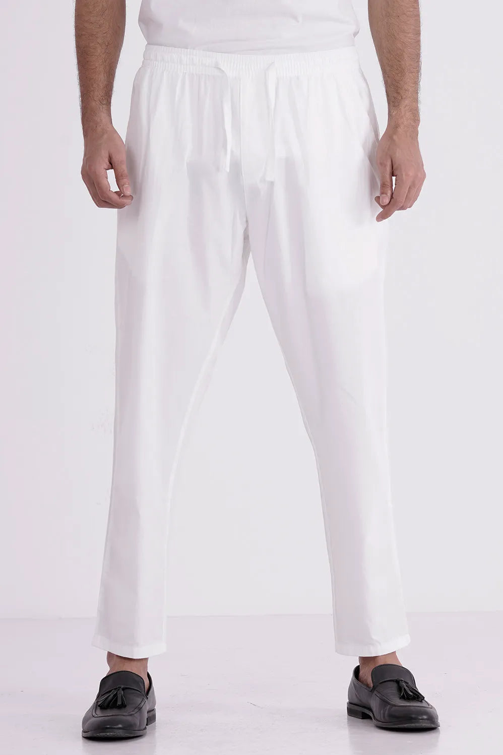 This men's pajama is the perfect blend of comfort and simplicity, crafted from soft cotton fabric in a crisp white color.
