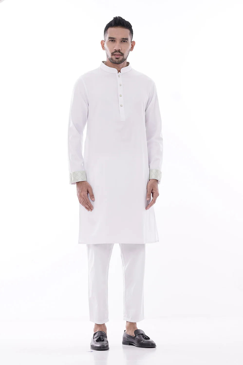 Adding contrast fabric along the edges of the Panjabi can create visual interest and make the garment stand out. For color & Fabric, this panjabi is comfortable and eye-catching.