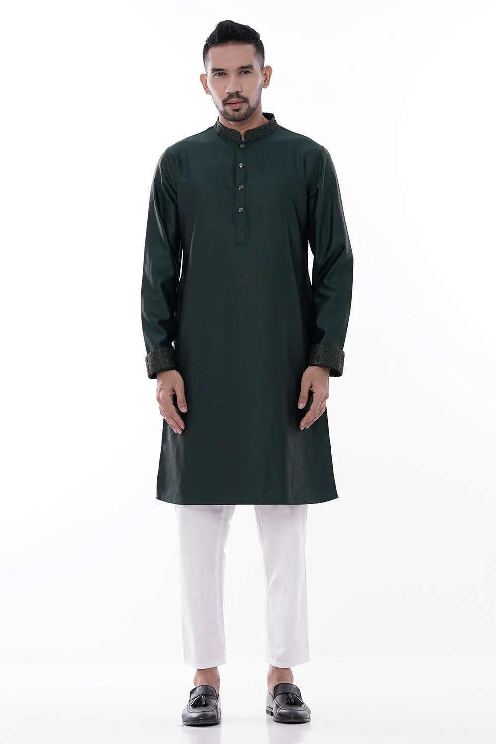 For a more stylish look, this Panjabi's contrast fabric is slightly different in shade or texture from the main fabric. This adds a subtle touch of elegance without being too overpowering.