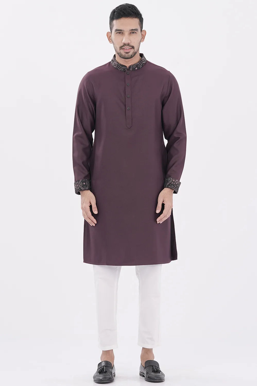For a more stylish look, this Panjabi's contrast fabric is slightly different in shade or texture from the main fabric. This adds a subtle touch of elegance without being too overpowering.