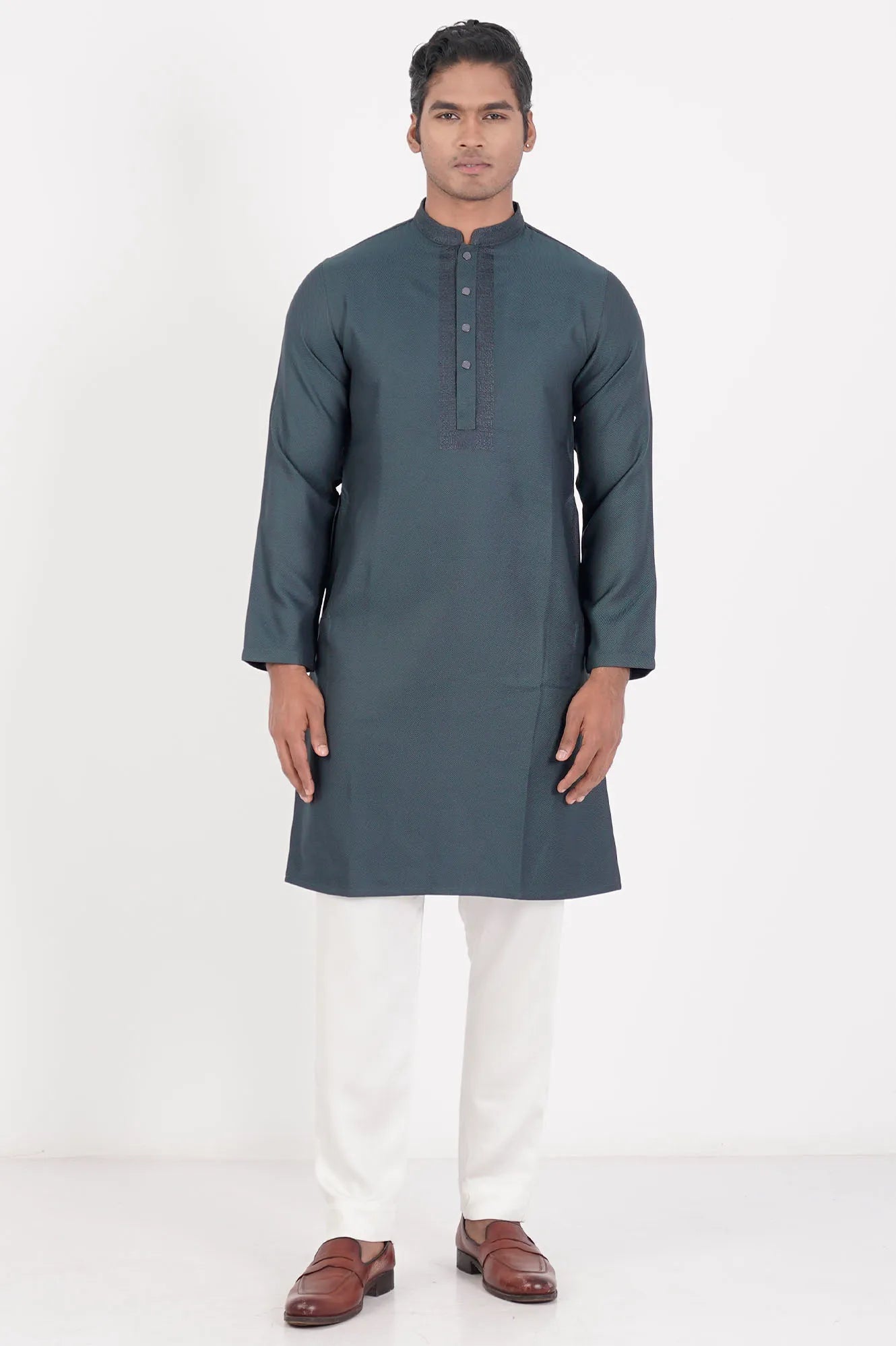 This premium Panjabi, crafted from a blend of cotton and polyester fabric, combines comfort with durability for an effortlessly stylish look. The lightweight, breathable material ensures all-day ease while maintaining a crisp appearance.