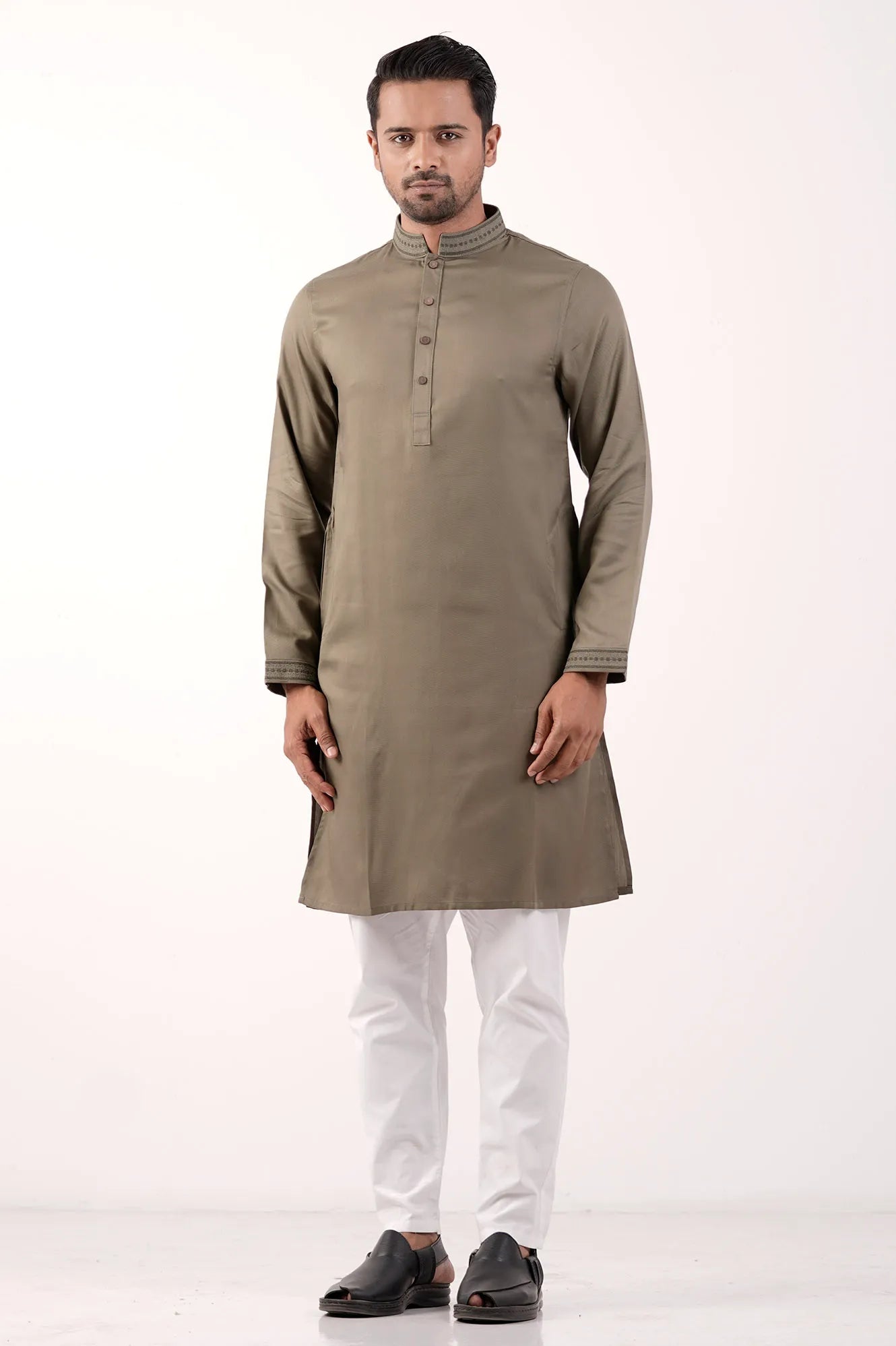 This premium Panjabi, crafted from luxurious viscose fabric, offers a smooth and silky feel that drapes beautifully on the body. The lightweight, breathable material ensures comfort throughout the day, while its subtle sheen adds a sophisticated touch.