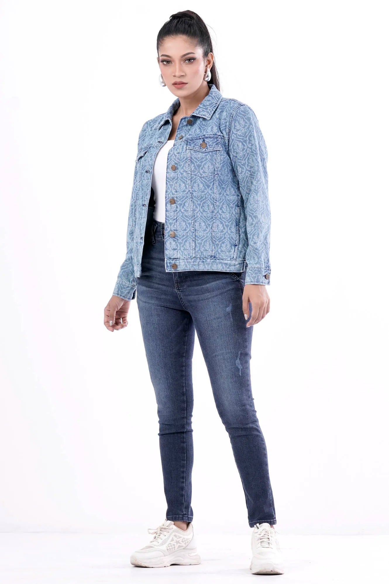 A cool denim jacket for women for a classic casual look with this stylish jacket, crafted from soft cotton-rich denim