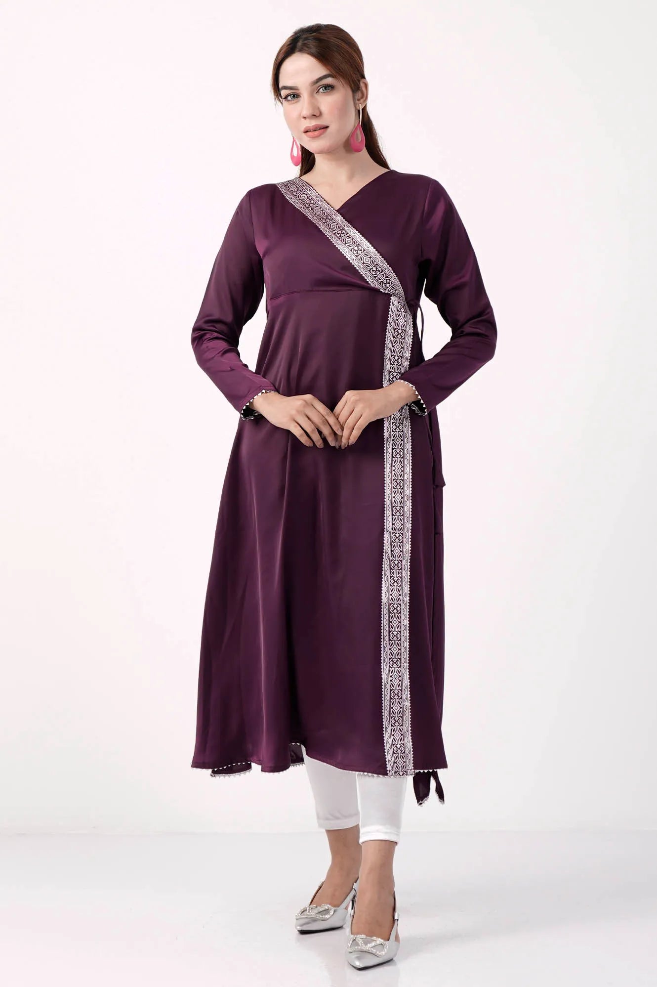 • Surplice neck with decorative straps