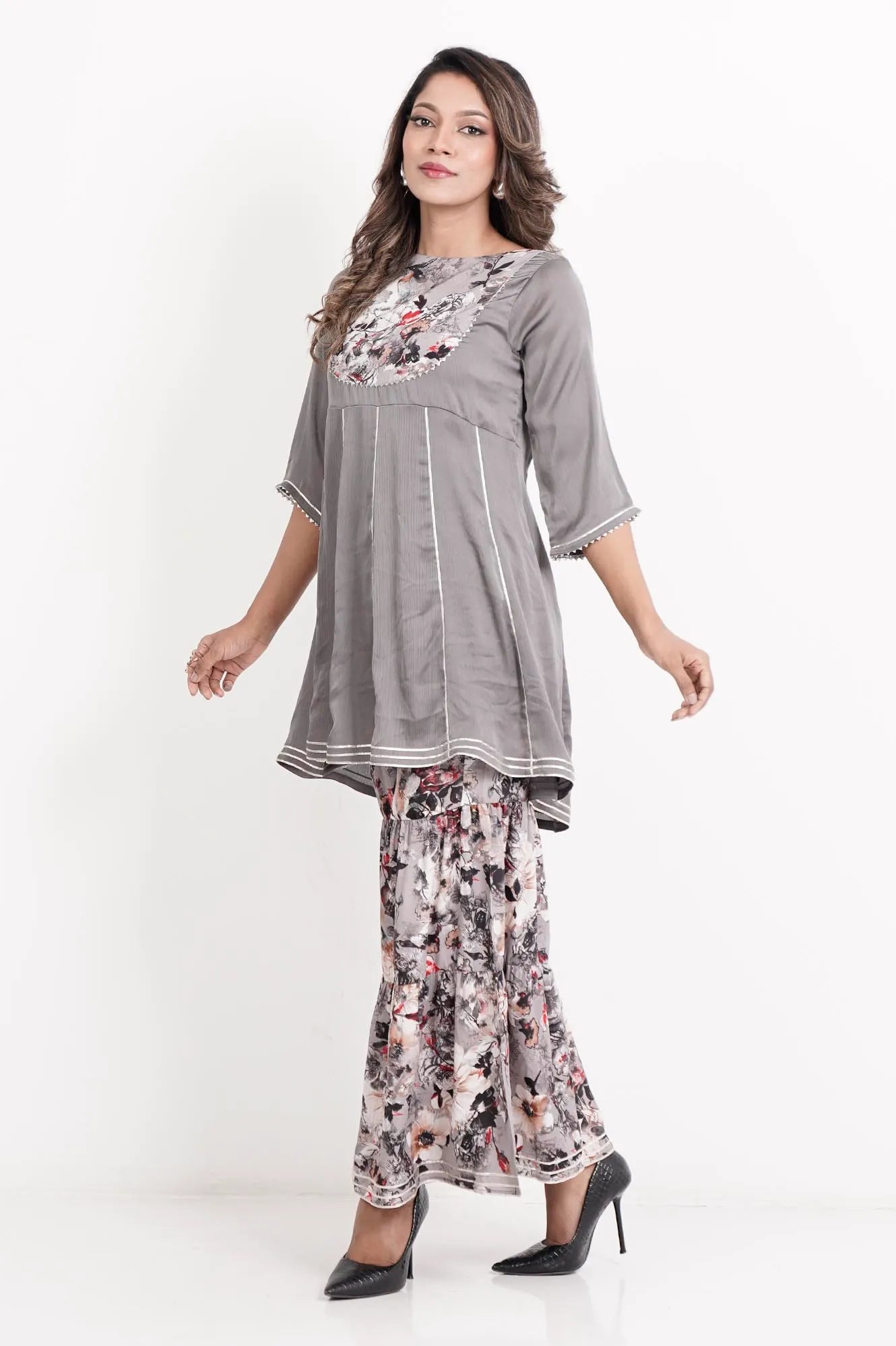 Grab a casual bite to eat outside in this beautiful piece with leggings or a cambric cigarette pants, and comfortable flats