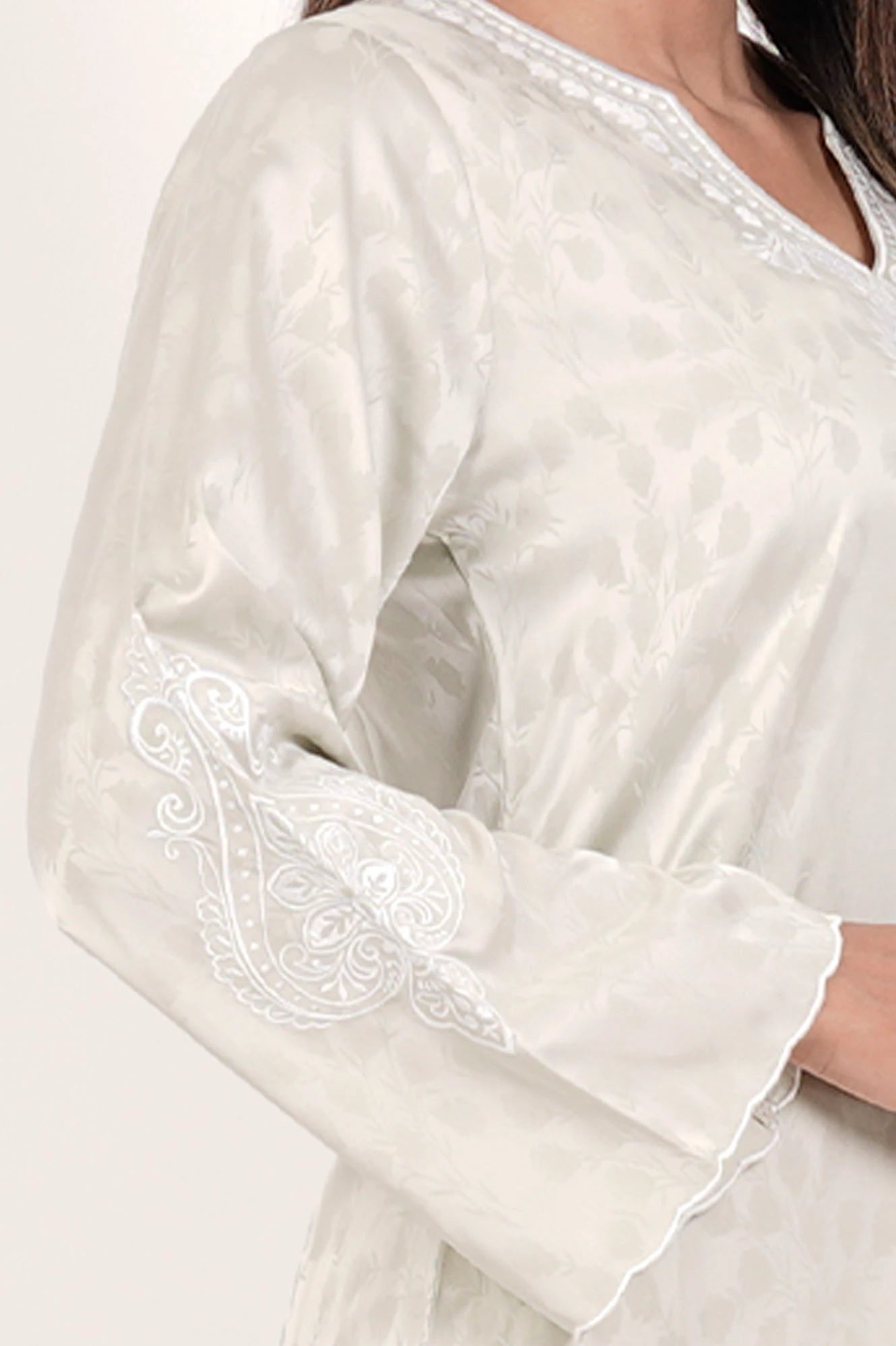 Featuring a delicate and artisanal white embroidery, it’s the perfect balance of traditional grace and modern design