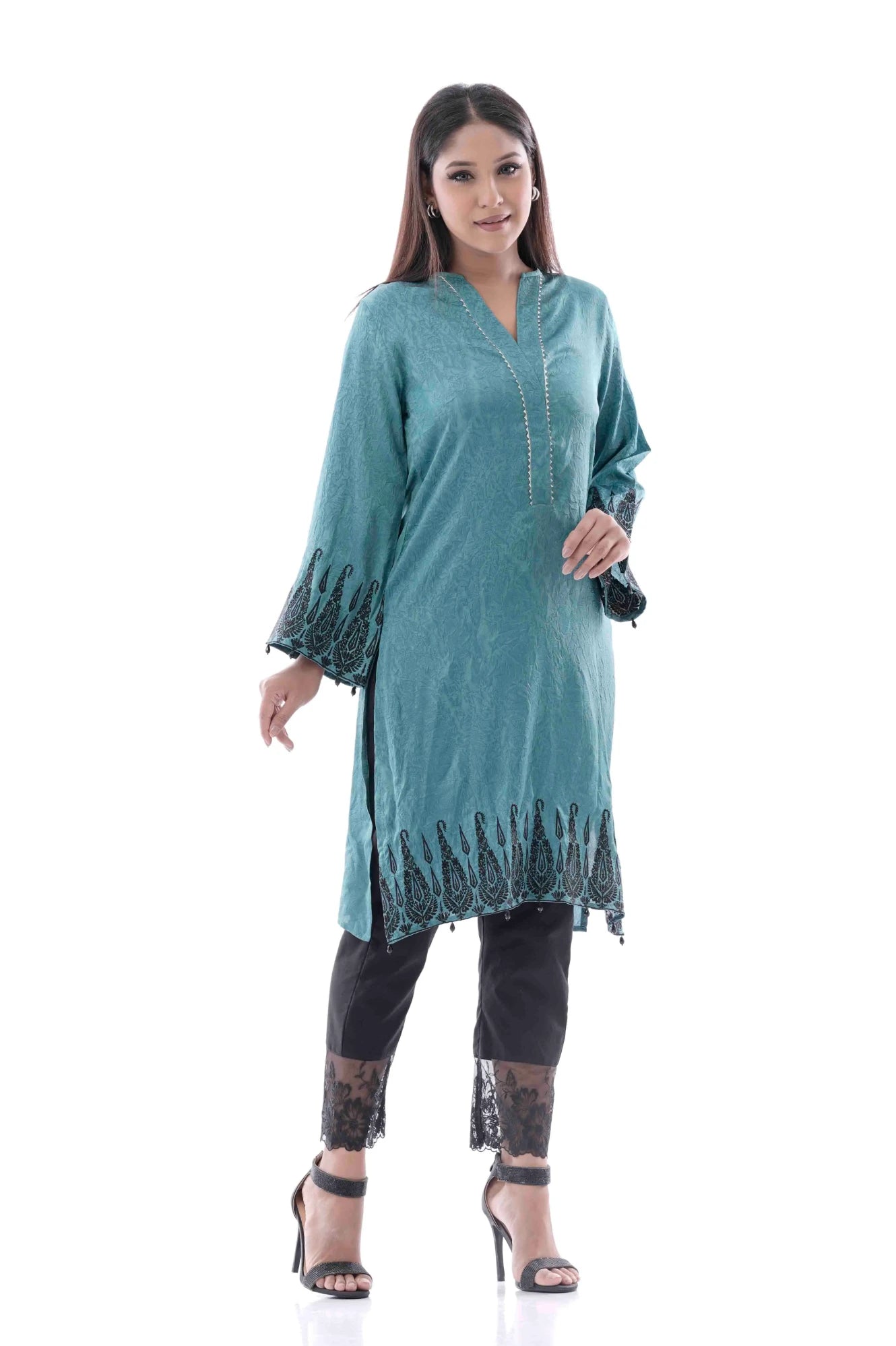 Blending vibrant colors, intricate pattern and premium fabrics, this ethnic set exudes worldly sophistication